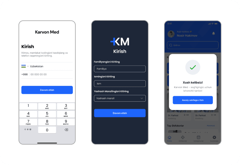 KARVON MED – bu foydalanuvchilarni yaqin atrofdagi shifokorlar bilan bog‘lashga mo‘ljallangan zamonaviy mobil ilova. U orqali foydalanuvchi shifokorning tajribasi, reytingi va bemorlar fikrlarini ko‘rib, tezkor tarzda uyga chaqirishi yoki maslahat olishi mumkin.