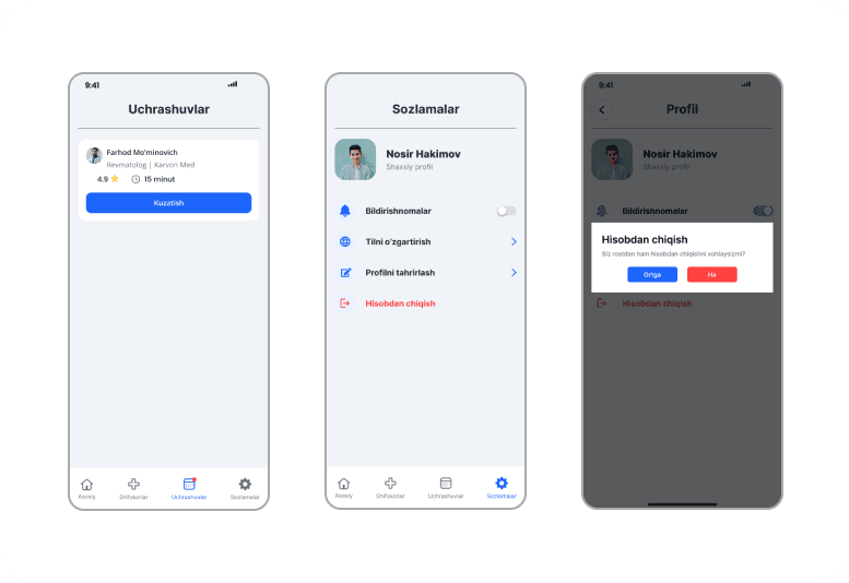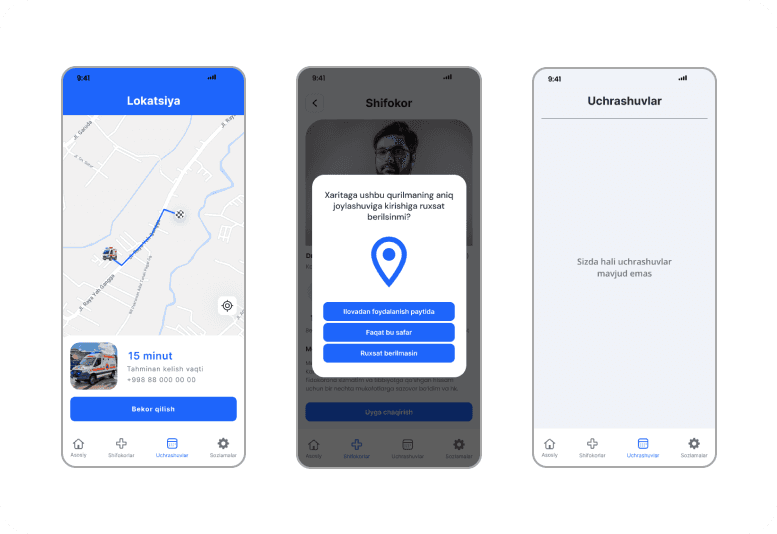 Bir necha bosqichda uyga shifokor chaqirish imkoniyatini yaratadi