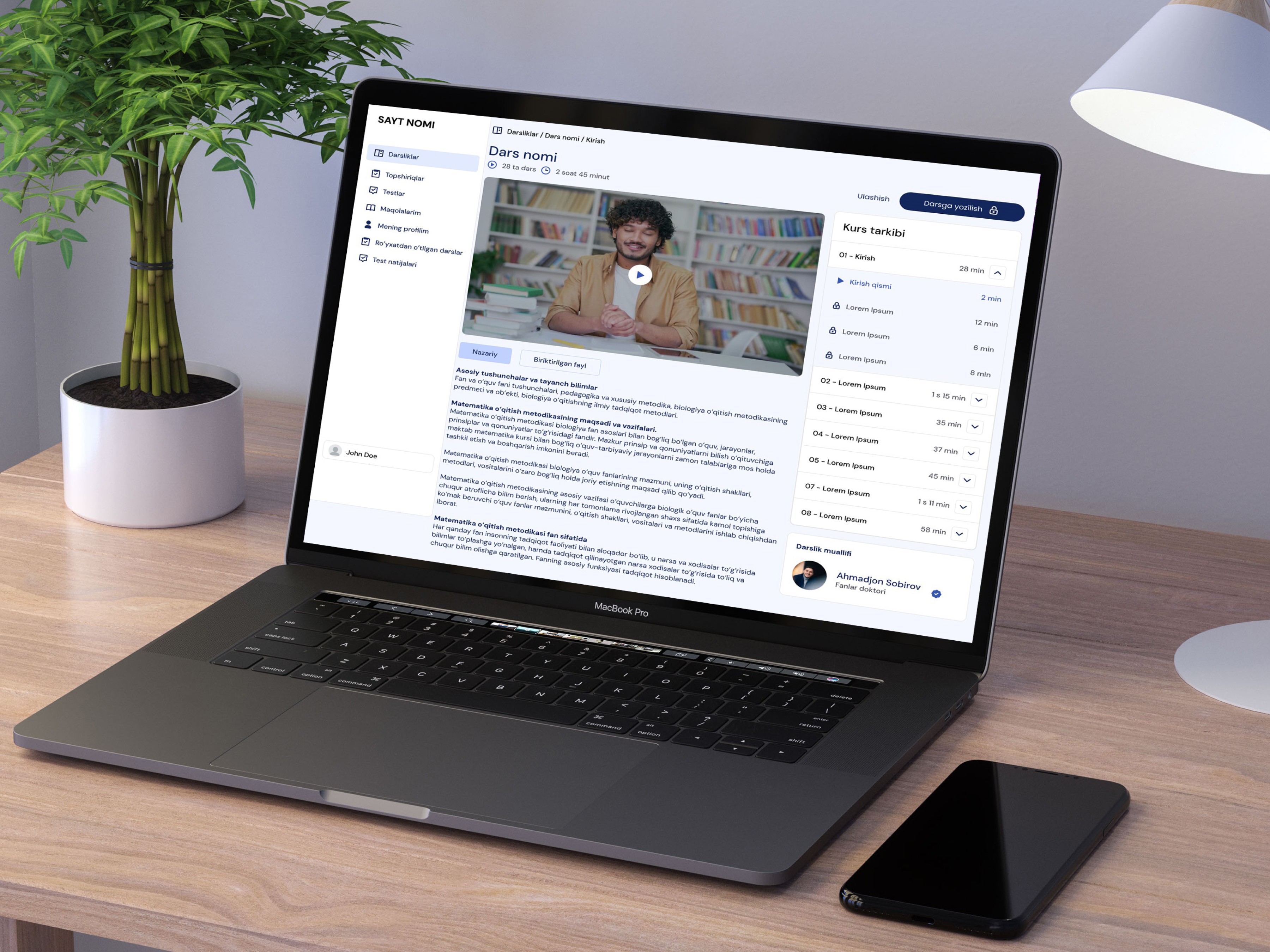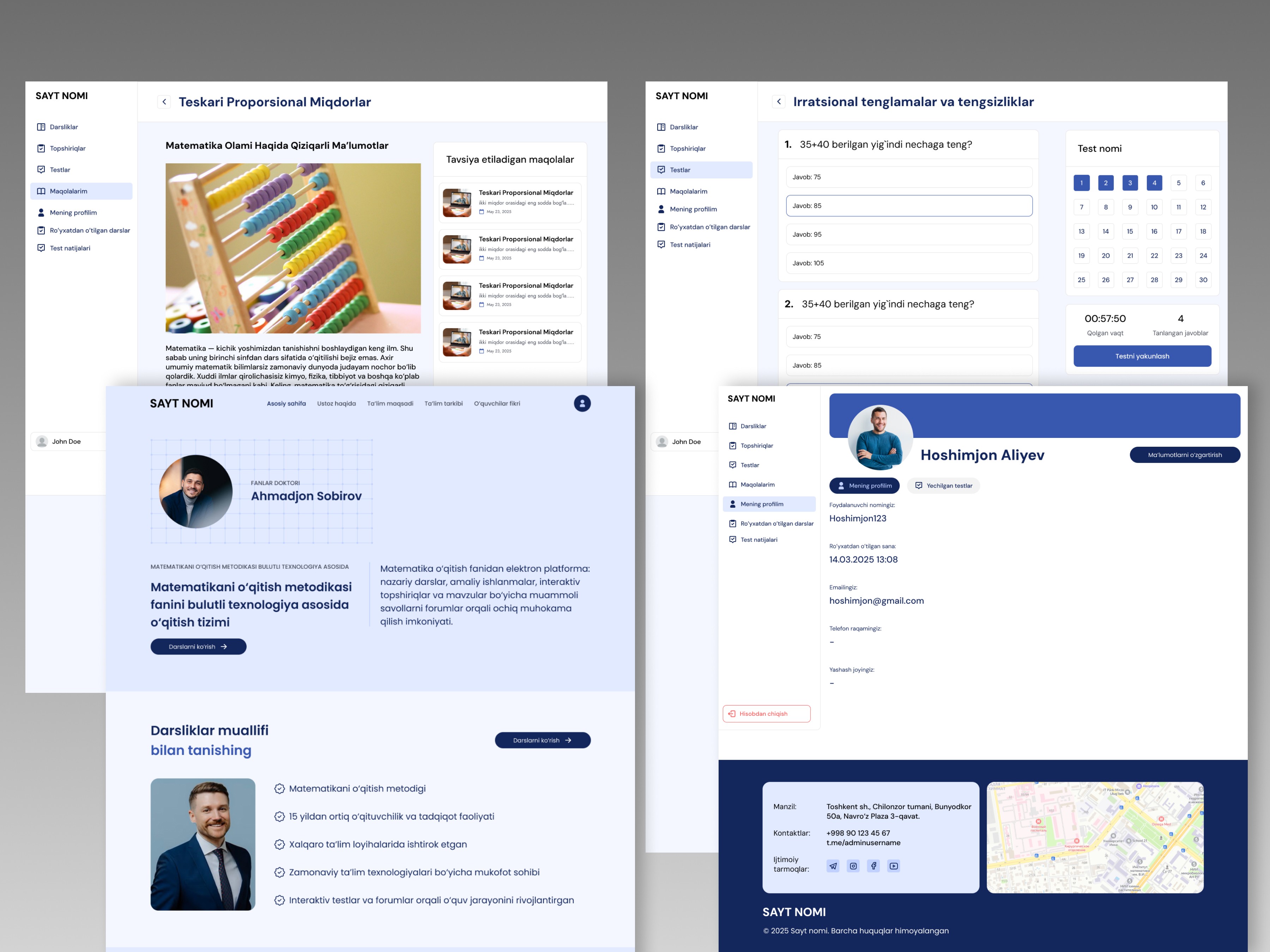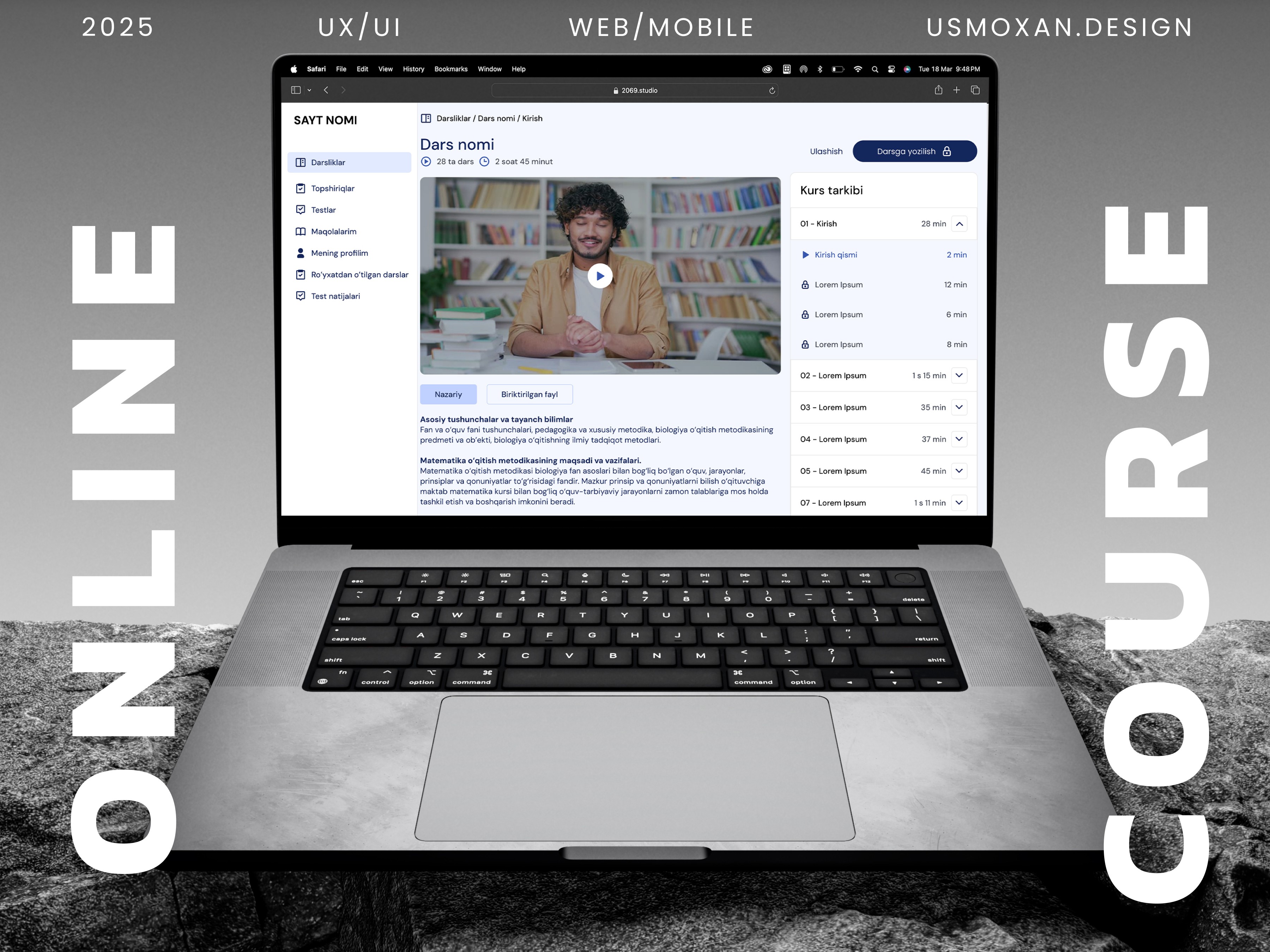 🧑🎓 Bu dizayn O‘zbekistonda onlayn ta’limni rivojlantirishga xizmat qilishi mumkin bo‘lgan real loyiha asosida yaratilgan. Har bir detal o‘ylab chiqilgan va foydalanuvchiga qulaylik yaratish maqsadida joylashtirilgan.
